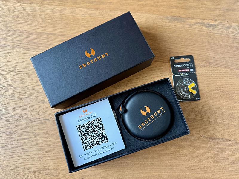 La semaine suivante, nous découvrons les oreillettes Shothunt PBS, dans une grosse boîte carton qualitative, avec une sérigraphie cuivrée de la marque sur le dessus…