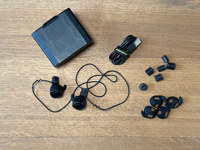 Des fois, quand il fait chaud, je n’ai pas envie d’enfermer mes oreilles dans un casque anti-bruit classique… Ou, quand il fait froid, j’aimerais bien mettre un bonnet par-dessus mes oreilles. J’avais vu des tireurs de TSV équipés de casques intra-auriculaires et je me suis orienté vers les Nitecore NE20, avec un prix relativement correct (par rapport à la concurrence)…