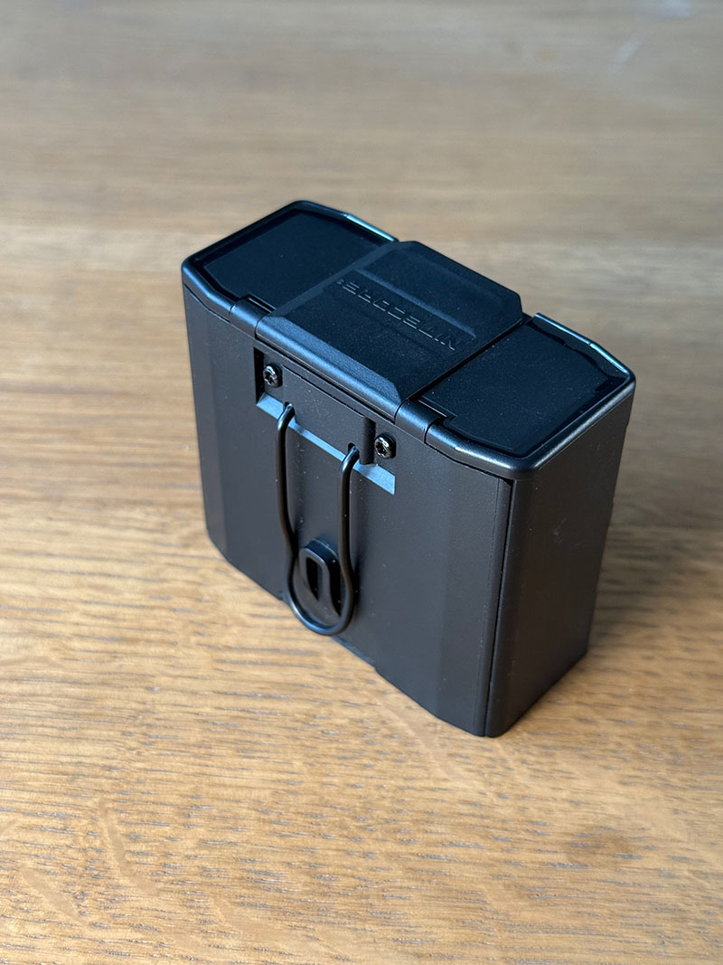 Le boitier est équipé d’un clip qui permet de l’attacher sur une ceinture ou sur un sac à dos, pour le garder à portée de main… Il est étanche à la pluie, à la transpiration et aux éclaboussures.